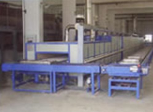采用陶瓷滾棒傳送,可去除大量的工藝窯具,傳送距離長(zhǎng),上、下料方便,傳送平穩(wěn)、可靠。