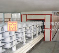 梭式窯容積0.2~6m3的試驗爐,8~20 m3的日用瓷梭式窯,30~50 m3的微晶玻璃梭式窯,60~120 m3的衛生潔具梭式窯。適合各種特殊要求的梭式窯爐; 窯體及窯車輕型化,內墻內壁采用50㎜厚的高溫多晶棉,多晶棉上噴濺高溫固化劑,既保溫又能防落臟;窯墻用0.8比重高溫隔熱耐火磚,窯頂用高溫莫來石空心板吊頂另加高溫含鋯毯保溫; 窯墻總厚度400㎜, 50㎜厚的高溫多晶棉+由230㎜高溫莫來石JM-28+120㎜保溫棉(適合1300℃以下中溫梭式窯); 自動控制高速等溫噴槍燃燒,實現溫度曲線人工設定由計算機自動執行,根據燒成產品的實際情況溫度和時間可自行調整; 燒成氣氛的自動控制,燒成氣氛的控制由計算機自動調節,每個溫度段的氣氛人為在計算機里事先設定好,氣氛調節自動和手動相結合; 節能降耗,縮短燒成周期,充分利用窯爐余熱對產品進行干燥;備用窯車,可實現進出窯車連續和間歇生產相結合; 同一產品不同窯次的燒成實際質量達到同一標準,實際標準化的燒成計劃,燒成數據的自動保存和打印; 實際計算機控制風機啟動和噴槍的遠程點火控制,窯壓曲線人為設定自動控制; 帶空氣過濾器的助燃風機,304不銹鋼助燃風管外并加2㎝厚的棉毯保溫,窯體采用高溫烤漆裝飾板,經濟美觀和環保; 助燃風經窯爐排出的煙氣間接加熱使助燃風溫度達到80-120℃,達到窯內溫度均勻及降低燃料的消耗作用,采用304不銹鋼助然風機和排煙風機,助燃風機帶空氣過濾器,助燃風管為2㎜厚304不銹鋼管道。