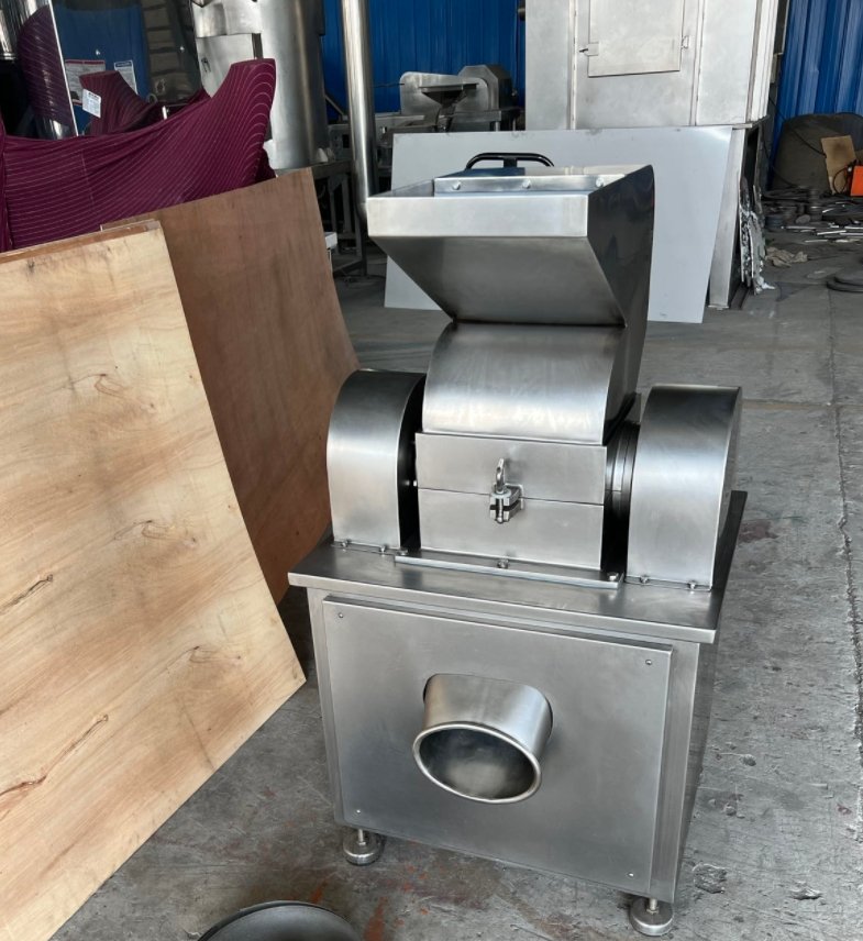 本機為臥式粉碎結構。物料通過料斗進入破碎室,經固定刀和旋轉刀的切割和沖擊破碎后,在旋轉離心力的作用下自動流入出口。本機按GMP標準設計,全不銹鋼制造,結構簡單,清洗方便,噪音低,是粗粉碎的理想設備。它不受物料粘度、硬度、軟度及纖維等限制,對多種物料都能起到較好的粉碎作用。