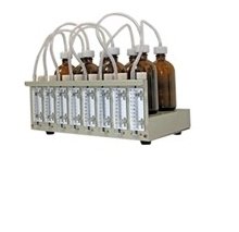 使用870型直讀BOD5測(cè)定儀,將預(yù)先選好量程并按量程范圍量好體積的水樣倒入培養(yǎng)瓶中,在BOD5測(cè)定儀主機(jī)攪拌器上連續(xù)攪拌。并將主機(jī)和培養(yǎng)瓶放入培養(yǎng)箱中。調(diào)節(jié)培養(yǎng)箱內(nèi)溫度為20℃±1℃,待樣品恒溫后進(jìn)行五日培養(yǎng)。培養(yǎng)瓶中的水樣在連續(xù)攪拌的情況下保證了足夠的溶解氧供微生物進(jìn)行生化反應(yīng)。水樣中的有機(jī)物經(jīng)過(guò)生物氧化作用,轉(zhuǎn)變成氮、碳和硫的氧化物。在這一過(guò)程中,從水樣中溢出的*氣體二氧化碳被氫氧化鈉(或氫氧化鉀)吸收。此時(shí),培養(yǎng)瓶中空氣壓力減少量,相當(dāng)于微生物所消耗的溶解氧含量,即水樣BOD5值與瓶中空氣壓力減少的程度成正比,所以BOD5的值可以由空氣壓力減少值來(lái)測(cè)定,增加或減少所取樣品的量可以增加或降低壓力減少值。這樣操作者就能準(zhǔn)確測(cè)量很寬范圍的BOD5值。培養(yǎng)瓶中空氣壓力的變化是通過(guò)壓力計(jì)中汞柱高度的變化來(lái)進(jìn)行檢測(cè)的,通過(guò)簡(jiǎn)單的計(jì)算即能讀出水樣的BOD5值。