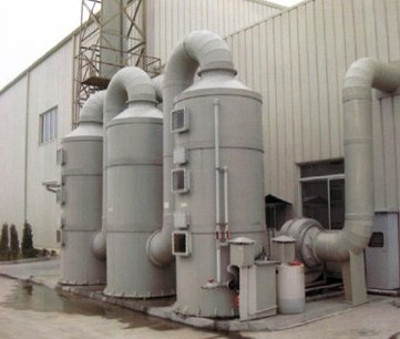 廢氣源產生的廢氣經吸風罩、風管,由風機抽入凈化塔工作室,經過不等速迂回式的送風系統送入凈化塔處理器。氣體經噴淋后穿過最新穎的多面空心球填料組成的填料層,再經過1-2道噴霧處理,使廢氣大面積充分接觸并吸