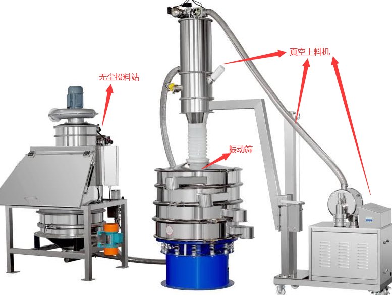 無塵投料站由人工卸料平臺(tái)、安全篩網(wǎng)、下料倉、除塵過濾裝置、