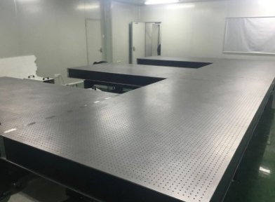 由于電梯、過道、實驗室門寬的限制及運輸、搬運、安裝等過程中的困難,整體的超大尺寸光學平臺要進入到實驗室就變得非常困難,這時候就需要采用現場拼接來解決這一問題。而上臺面或側面的表面鏈接技術只是“表面上”的連接而已,實際對整體的穩定性、一致性、平面度及整體隔振性能起不到太大的作用。我司采用的是目前非常先進且極其實用的內部插削式&加強螺栓固定拼接技術,能保證整體的一致性、穩定性及平整度,且整體的隔振性能不受影響。