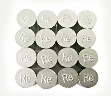 外觀:圓柱或方塊狀,中致密度錸錠呈深灰色,高致密度錸錠呈亮銀色,有金屬光澤。
