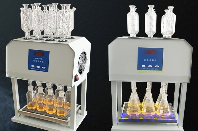 SCOD-100型標準COD消解裝置依據國家環境標準(HJ828+2017),采用微機技術進行定時控制加熱電爐,可對5個250ml錐形消解回流裝置進行加熱,玻璃毛刺回流管代替球形回流管,并以風冷技術取代傳統自來水冷卻方式,采用倒計時方式、無人看管,達到節能、增效、環保的目的,不但儀器更美觀,同時還提高了儀器使用的安全性。