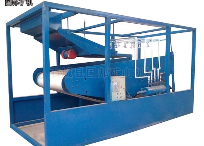TLGP平板式高梯度磁選機主要由支架、板式磁選系統、入料攪拌系統、水源系統、卸鐵系統、調節系統等結構組成。 工作時,物料流向和卸鐵系統成反向逆流式,非磁性物質利用物理學結構原理自流至出料口,經卸礦沖洗達到完全卸干凈的目的。磁性物質經長距離、長區域、多次數被超強磁場吸附,經卸鐵系統逆向運轉至出鐵口,經卸礦沖洗達到完全卸干凈的目的。