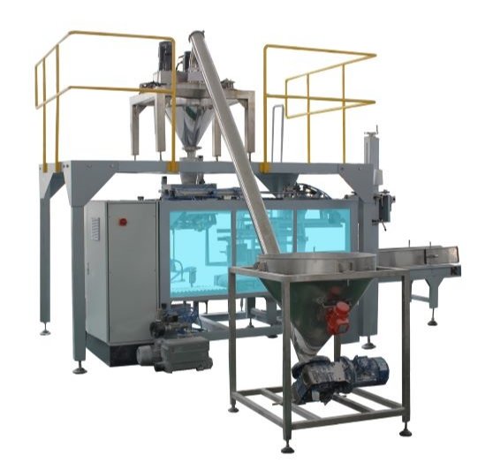 我公司針對(duì)農(nóng)化、食品等行業(yè)粉狀物料包裝而研制的新型包裝機(jī)組。該機(jī)組具有自動(dòng)供袋、上袋、填充、送包、封口等功能。可與各類粉體物料設(shè)備聯(lián)動(dòng)工作,實(shí)現(xiàn)大規(guī)格包裝無人化生產(chǎn)作業(yè)。