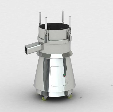 本機由料斗、震蕩室、連軸器、電機組成。震蕩室內有偏心輪、橡膠軟件、主軸、軸承等組成??烧{節的偏心重錘經電機驅動傳送到主軸線,在不平衡狀態下,產生離心力,使物料強制改變在篩內形成軌道旋渦,重錘調節器的振幅大小可根據不同物料和篩網進行調節。整機結構緊密、體積小、不揚塵、噪音低、產量高、能耗低,移動、維修方便。
