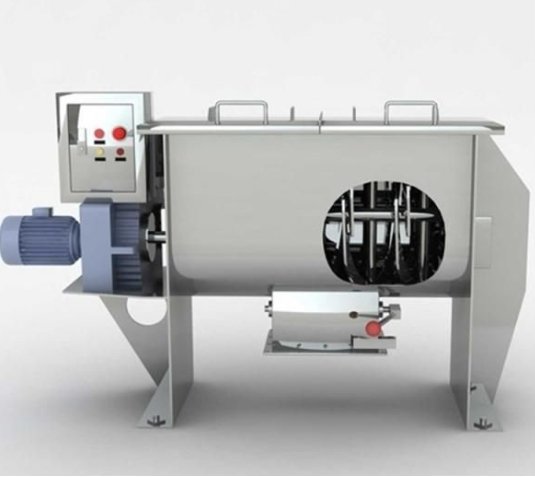 螺帶混合機是由U形容器、螺帶攪拌葉片和傳動部件組成;U形的長體筒體結構,保證了被混合物料(粉體、半流體)在筒體內的小阻力運動。正反旋轉螺條安裝于同一水平軸上,形成一個低動力快速的混合環境,螺帶狀葉片一般做成雙層或三層,外層螺旋將物料從兩側向中間匯集,內層螺旋將物料從中間向兩側輸送,可使物料在流動中形成更多的渦流。加快了混合速度,提高混合均勻度;