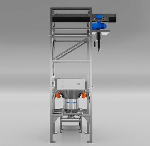 噸袋解包站是通過電葫蘆將物料袋提升到上料倉,人工將包裝袋下料口拆開后,打開流量控制閥和附帶的振動下料裝置促使包裝袋內的粉粒狀物料通過自重落到下方料斗中,**吊裝重量可達3t,可根據實際生產需求個性化定制。