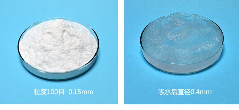 高吸水性樹脂 高吸水性樹脂是一種吸水能力特別強的功能高分子材料。無毒無害,反復釋水、吸水,因此農業上人們把它比喻為"微型水庫"。同時,它還能吸收肥料、農藥、并緩慢釋放,增加肥效、藥效。高吸水性樹脂廣泛用于農業、林業、園藝、建筑材料;在工業方面可廣泛應用于石油化工、電纜、造紙、傳感器、滅火器具、纖維制品、化妝品、食品保鮮、膨脹玩具等。在醫療衛生方面也可廣泛應用于衛生巾、嬰兒紙尿布、成人失禁墊片、保健冰帽、冰墊、吸血藥布等領域。 產品特性: 1,無毒.安全環保,無毒無味,不污染植物,土壤和地下水,果樹花卉,植樹造林,無土栽培,植物保鮮運輸,大田作物等. 土壤保水劑和防水土流失劑到終分解物為二氧化碳,水,氨態氮和鈉或鉀離子,無任何殘留. 2,保墑省水.可有效抑制水分蒸發,防止水土流失,即使在有灌溉的條件下,仍然可省水50%以上. 3,改善土壤結構.使粘重土壤,漏水肥的沙土和次生鹽堿土壤得以改良.同時促進土壤微生物發育,提高土壤有機物的周轉利用效率. 4,使用壽命長.集多種聚合物之特性,可反復吸水膨脹和釋放收縮,在生產中使用壽命可達6年以上,是目前市場上使用壽命長的土壤保濕產品. 5,吸水速度快.一般自然水吸至飽和長時間約為15-40分鐘,快0.4分鐘. 6,水肥利用率高.土地保水劑在土壤中形成的"小水庫"接受施肥,灌溉(或降雨)造成淋溶流失的微量元素減少1/3,保護環境;當再次干旱時,吸足水的保水劑使周圍的土壤保持潮濕,以供給植物根系水分.即使在沙漠地區和極端的干旱氣候,在年降雨量達200mm時,也可種草植樹. 7,蓄水不爛根吸足似水的保水劑分子膨脹成為水凝膠晶體,即使緊靠植物根系也不會爛根. 8,性能穩定即使是極端的干旱,也不會倒吸植物水分. 保水劑的主要功能: 1.保水.保水劑不溶于水,但能吸收相當自身重量成百倍的水.保水劑可有效抑制水分蒸發.土壤中滲入保水劑后,在很大程度上抑制了水分蒸發,提高了土壤飽和含水量,降低了土壤的飽和導水率,從而減緩了土壤釋放水的速度,減少了土壤水分的滲透和流失,達到保水的目的. 2,保肥.因為保水劑具有吸收和保蓄水分的作用,因此可將溶于水中的化肥,農藥等農作物生長所需要的營養物質固定其中,在一定程度上減少了可溶性養分的淋溶損失,達到了節水節肥,提高水肥利用率的效果. 3,保溫.保水劑具有良好的保溫性能.施用保水劑之后,可利用吸收的水分保持部分白天光照產生的熱能調節夜間溫度,使得土壤晝夜溫差減小.在砂壤土中混有0.1%~0.2%的保水劑,對10厘米土層的溫度監測表明,對土溫升降有緩沖作用,使晝夜溫差減少為11~13.5℃,而沒有保水劑的土壤為11~19.5℃. 4,改善土壤結構.保水劑施入土壤中,隨著吸水膨脹和失水收縮的規律性變化,可使周圍土壤由緊實變為疏松,孔隙增大,從而在一定程度上改善土壤的通透狀況.