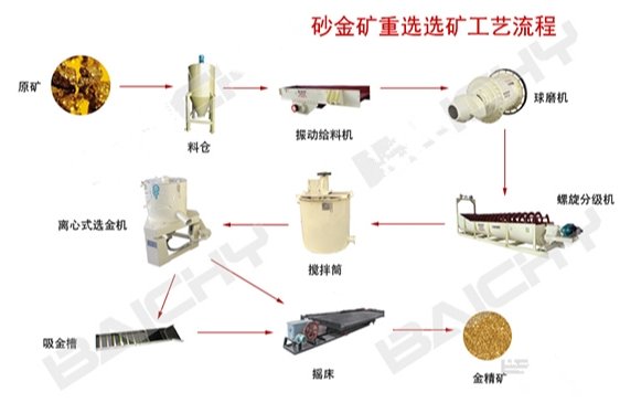 金的比重比較大,比較適合用重選法(跳汰選金、搖床選金、溜槽選金等),根據(jù)金礦的組成也可聯(lián)合采用混汞選金法、氰化法、浮選法。