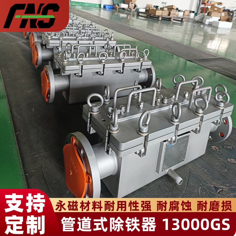 管道除鐵器是一種用于液體或氣體輸送管道中的磁性過濾裝置,主要用于吸附和去除流體介質(zhì)中的鐵磁性雜質(zhì)(如鐵屑、焊渣、銹蝕顆粒等),保護(hù)下游設(shè)備(如泵、閥門、噴嘴等)免受磨損或堵塞。其核心采用高性能釹鐵硼磁體或電磁結(jié)構(gòu),提供強(qiáng)磁場吸附力,可安裝在水平或垂直管道上,并配備法蘭或螺紋接口以便于安裝。部分型號支持手動或自動清理功能,適用于化工、食品、制藥、水處理等行業(yè),確保流體純凈度和生產(chǎn)安全