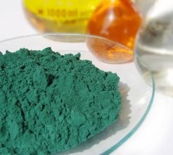 為淺綠至深綠色細小六方結晶,有金屬光澤,遮蓋力強,耐高溫,耐日曬,不溶于水,難溶于酸,在大氣中比較穩定。