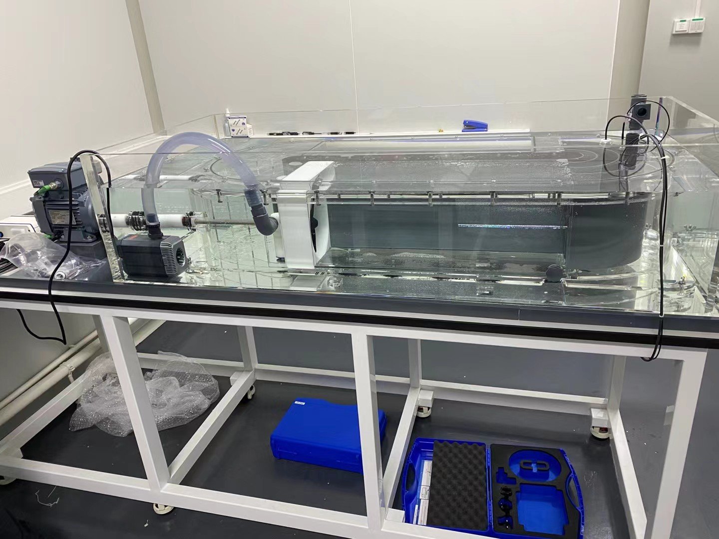 原理:設(shè)備提供魚類頂流游泳能力的測試功能,系統(tǒng)通過電腦控制馬達(dá)控制盒的電壓輸入調(diào)整葉輪轉(zhuǎn)速,從而制造不同流速狀態(tài)下的游泳區(qū)域,從而測試魚類的游泳能力。該設(shè)計(jì)具有靈活控制、高效實(shí)驗(yàn)、高度還原自然流場的優(yōu)勢。