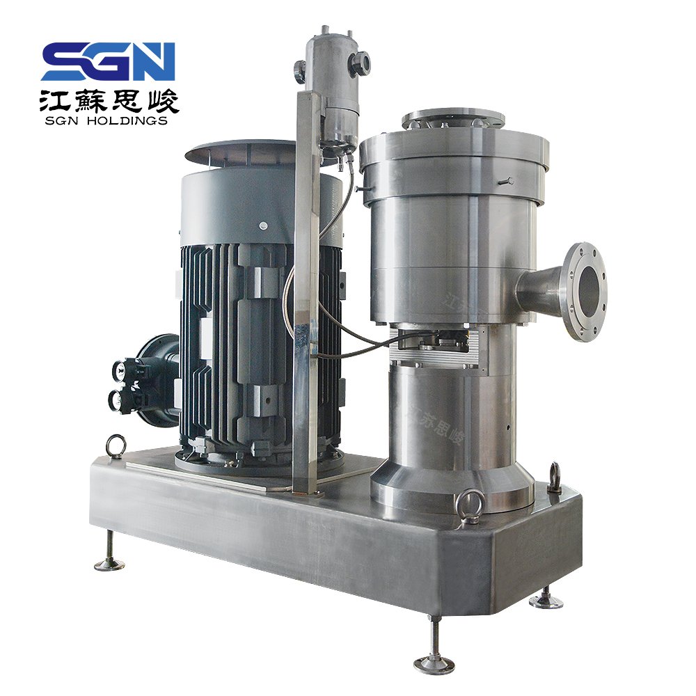 SGN食品分散設備研磨分散機尤其適合于需要研磨分散乳化均質一步到位的物料。我們將三級高剪切均質乳化機進行改良,將三級變跟為一級,然后在乳化頭上面加配了膠體磨磨頭,使物料可以先經過膠體磨細化物料,然后再經過乳化機將物料分散乳化均質,對于菌體的破碎有的高笑的剪切力,可以充分的將菌體破碎開,從而提高多糖核酸的提取率。