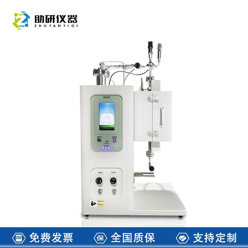 該套設備由7部分構成:1、透光立式爐;2、進氣系統;3、金屬反應器;4、石英反應器;5、鼓泡罐;6、氣液分離罐;7、控制系統。