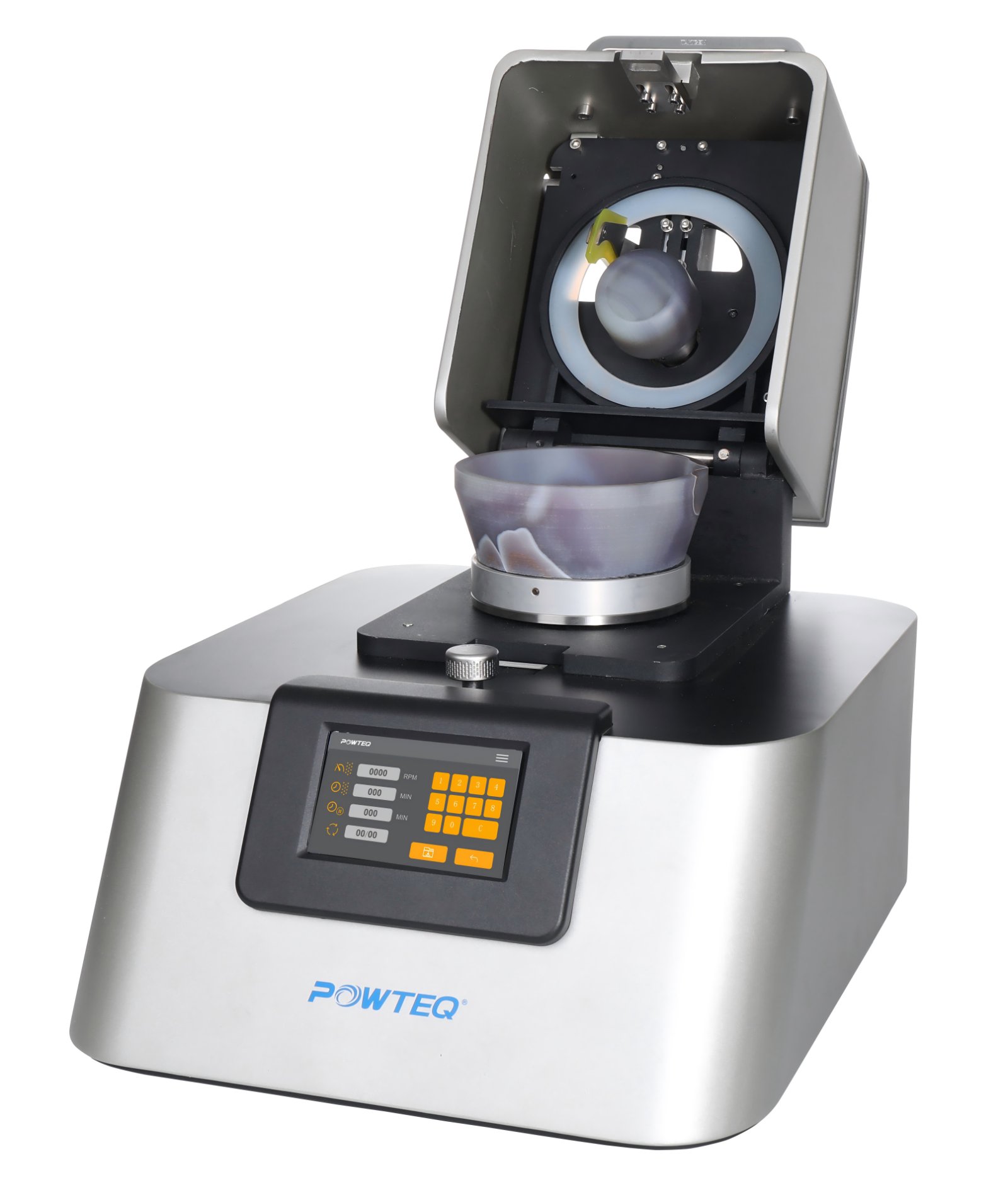 研磨缽以一定的速度轉動,研磨杵位于研磨缽偏心的位置。將待處理的樣品通過頂部的進料窗倒入研缽和杵頭之間的粉碎區,樣品在研磨缽的內表面與杵頭之間被擠壓和摩擦粉碎,同時在研磨缽與杵的底部進行粉碎和攪拌。研磨缽上的刮板可以保證樣品在每一個研磨周期內都被粉碎,使*終樣品的均勻性得以保證。