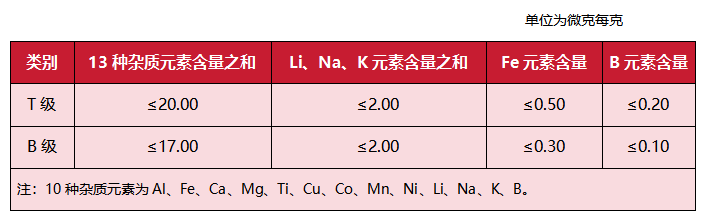 行業(yè)標(biāo)準(zhǔn)《JC/T 1048-2018單晶硅生長用石英坩堝》中規(guī)定了單晶硅生長用石英坩堝的雜質(zhì)元素含量要求。