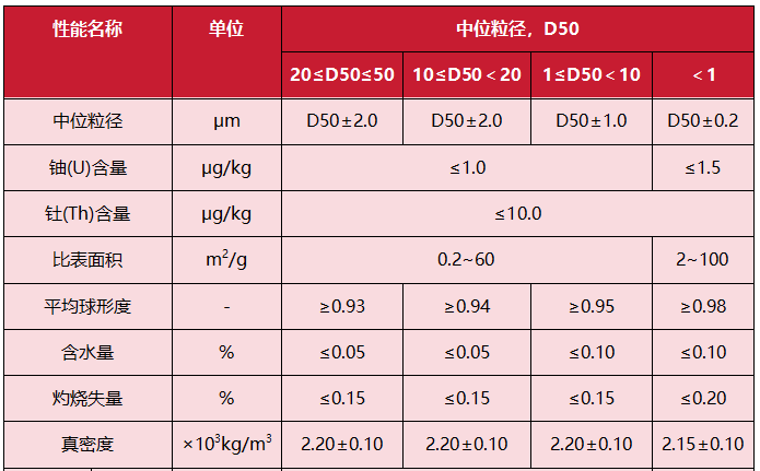 集成電路封裝用低放射性球形氧化硅微粉主要性能指標(biāo)