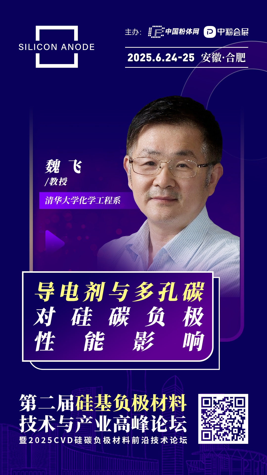 針對(duì)各類負(fù)極材料的產(chǎn)業(yè)化技術(shù)與國(guó)內(nèi)外市場(chǎng)狀況,中國(guó)粉體網(wǎng)將于2025年6月24-25日在安徽·合肥舉辦第二屆硅基負(fù)極材料技術(shù)與產(chǎn)業(yè)高峰論壇暨2025CVD硅碳負(fù)極材料前沿技術(shù)論壇。旨在為負(fù)極材料產(chǎn)業(yè)鏈上中下游企業(yè)搭建深度交流的平臺(tái),開(kāi)展產(chǎn)、學(xué)、研合作,助推負(fù)極材料行業(yè)持續(xù)健康發(fā)展。屆時(shí),清華大學(xué)魏飛教授將作題為《導(dǎo)電劑與多孔碳對(duì)硅碳負(fù)極性能影響》的報(bào)告。
