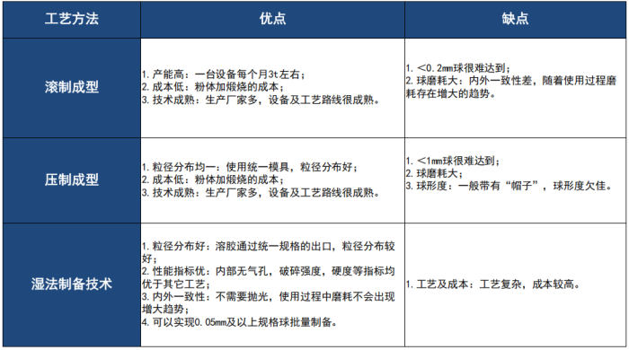 缺點:制備<0.2mm球很難達到;球磨耗大,內外一致性差,隨著使用過程磨耗存在增大的趨勢。
