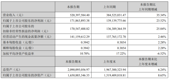 中國粉體網訊 近日,珂瑪科技發布半年度報告,報告顯示2025年上半年公司營業收入5.20億元,同比增長35.34%;歸母凈利潤為1.72億元,同比增長23.52%;扣非歸母凈利潤為1.71億元,同比增長25.04%。