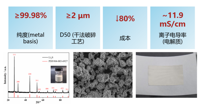 目前做的硫化鋰產(chǎn)品粒徑3微米以下,可以直接混料做硫化物電解質(zhì),不用再進(jìn)一步粉碎。純度99.9%以上,目前在建規(guī)模化的產(chǎn)線。