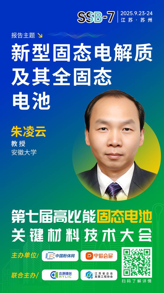 針對(duì)固態(tài)電池產(chǎn)業(yè)化發(fā)展現(xiàn)狀,中國(guó)粉體網(wǎng)聯(lián)合合源鋰創(chuàng)、江蘇省企業(yè)發(fā)展工程協(xié)會(huì)將于2025年9月23-24日在江蘇· 蘇州舉辦第七屆高比能固態(tài)電池關(guān)鍵材料技術(shù)大會(huì)。為致力于固態(tài)電池技術(shù)開(kāi)發(fā)的企業(yè),科研院校,以及新能源汽車(chē)、儲(chǔ)能、消費(fèi)電子等終端企業(yè)提供信息交流的平臺(tái),開(kāi)展產(chǎn)、學(xué)、研合作。屆時(shí),來(lái)自安徽大學(xué)的朱凌云教授將作題為《新型固態(tài)電解質(zhì)及其全固態(tài)電池》的報(bào)告。