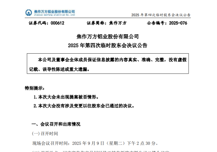公開資料顯示,焦作萬方主要業務為鋁冶煉及壓延加工,配套火力發電。公司主要產品包括鋁液、鋁錠及鋁合金制品。公司是河南省百強企業和河南省電解鋁骨干企業、中國有色金屬工業協會會員單位、河南省有色金屬行業協會副會長單位,河南省有色金屬行業和焦作市首家上市公司,是國內首家產業化采用大型預焙電解槽技術的電解鋁企業,開啟了我國大型預焙槽全面應用的時代。