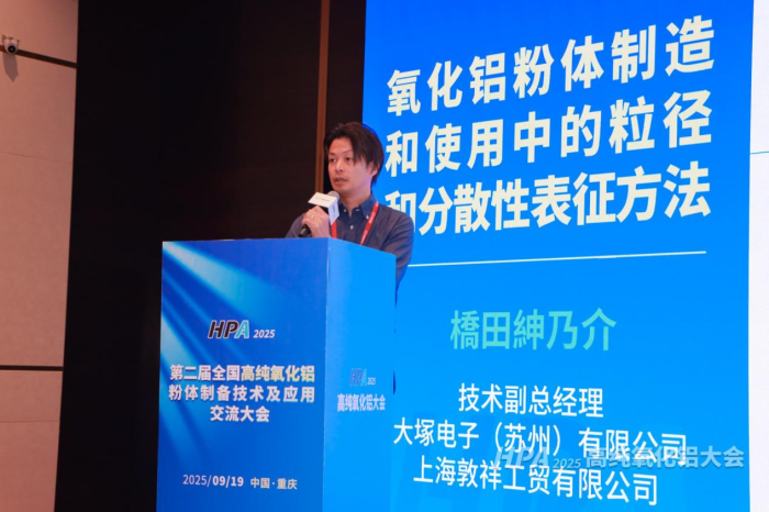 大塚電子(蘇州)有限公司技術副總經理橋田紳乃介作《氧化鋁粉體制造和使用中的粒徑和分散性表征方法》報告