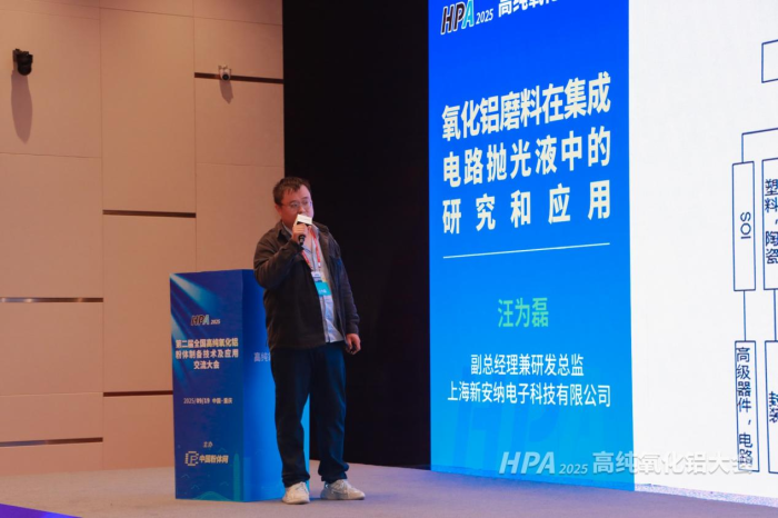 上海新安納電子科技有限公司副總經理兼研發總監汪為磊作《氧化鋁磨料在集成電路拋光液中的研究和應用》報告