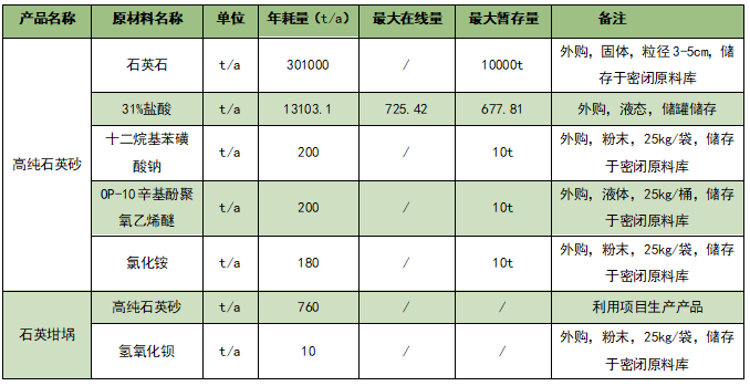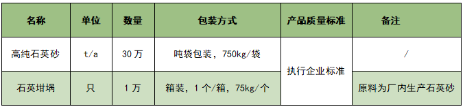 高純石英砂是一種重要的戰略性資源,是含石英礦石經加工提純后,雜質元素含量、包裹體含量、羥基含量以及粒度等達到半導體、光纖通信、光伏、光學、電光源、航天、軍工等相關領域要求的石英產品。據該項目環評內容顯示,該項目所生產的高純石英砂,一部分用于廠內石英坩堝的生產(每年消耗高純石英砂760噸),另一部分用于噸包外售(達產情況下,外售部分為299240t/a)。