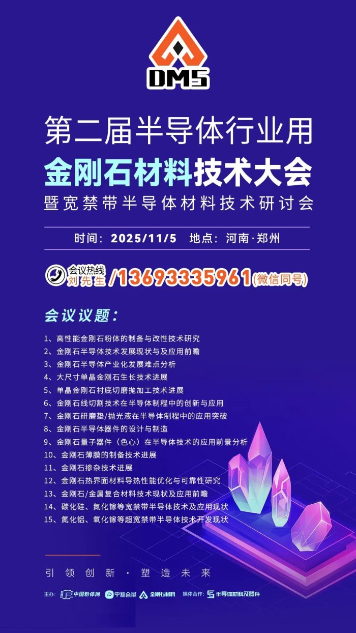 從2025半導體行業用金剛石材料技術大會組委會獲悉,本屆會議將于2025年11月5日在鄭州舉辦。華為技術有限公司邀請您共同出席。