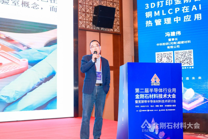 中科粉研(河南)超硬材料有限公司董事長馮建偉作《3D打印金剛石銅MLCP在AI熱管理中應用》報告