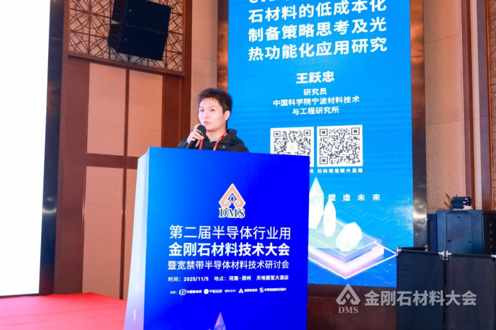 中國科學院寧波材料技術與工程研究所王躍忠研究員(朱毅代)作《CVD單晶/多晶金剛石材料的低成本化制備策略思考及光熱功能化應用研究》報告