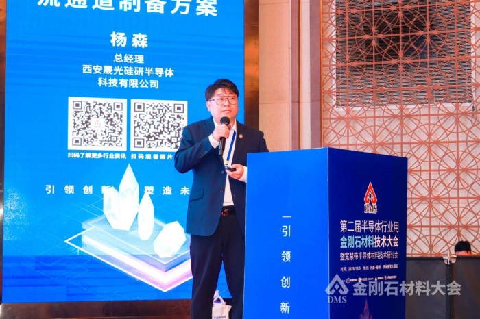西安晟光硅研半導體科技有限公司總經理楊森作《水導激光技術基于大尺寸金剛石高品質分片及微流通道制備方案》報告