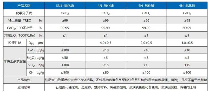 純品為白色重質粉末或立方體結晶,不純品為淺黃色甚至粉紅色至紅棕色(因含有微量鑭、鐠等),幾乎不溶于水和酸。
