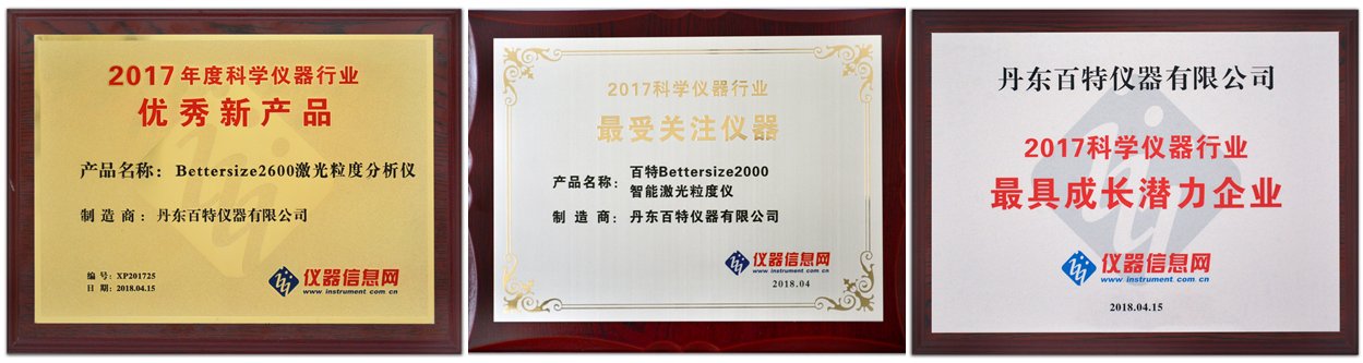在過去的2017年,百特激光粒度儀家族又添新成員,Bettersize2600以美觀的造形、精細的制造工藝、干濕法二合一設計和準確的測試結果,受到市場的追捧和用戶的青睞,多次出現供不應求排隊發貨的局面。一家買過一臺又簽訂兩臺合同的用戶說:“Bettersize2600 性能絕對不輸給進口著名品牌,測得準又好用,用買一臺進口儀器的錢買三臺Bettersize2600,太劃算了。” Bettersize2600 獲“2017年度科學儀器行業優秀新產品”獎。