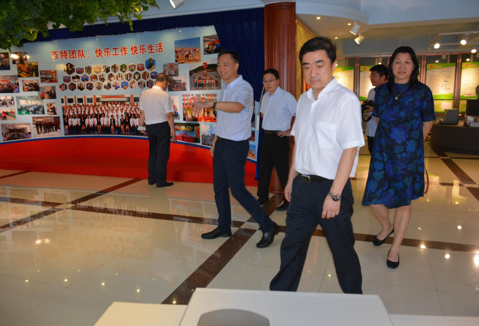 在百特展示廳,王廳長一行詳細(xì)觀看了百特二十多年的科技、管理、產(chǎn)品、市場以及企業(yè)文化方面取得的成就展。他對百特儀器連續(xù)多年獲得遼寧省專精特產(chǎn)品稱號、百特公司獲得46項專利和多項世界首創(chuàng)技術(shù)的成就表示稱贊。