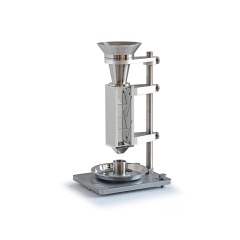 ● 用小勺細心地將金屬粉末放在BT-101上部組合漏斗的篩網上,粉末經過布料箱和方形漏斗后流入圓柱杯中,直到粉末在圓柱杯口形成錐體并有粉末從圓柱杯口周圍溢出為止。