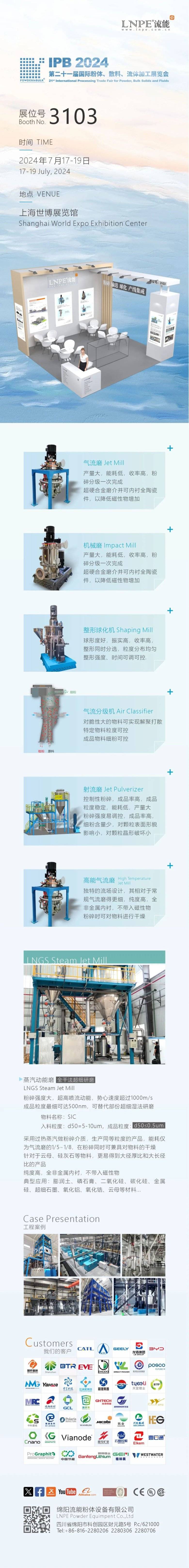?第二十一屆國際粉體、散料、流體加工展覽會(IPB 2024)時間:2024年7月17日至19日地點:上海世博展覽館綿陽流能粉體展位號:3103