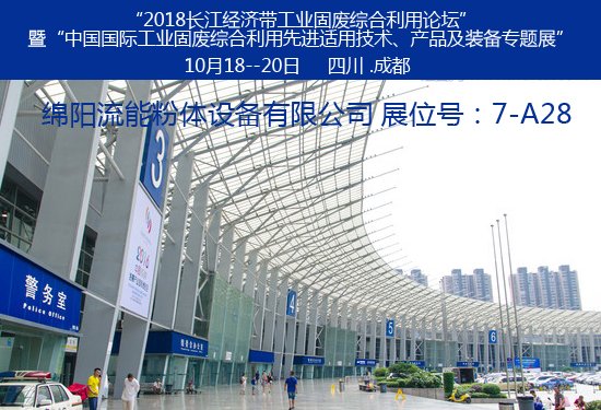 “2018長(zhǎng)江經(jīng)濟(jì)帶工業(yè)固廢綜合利用論壇”暨“中國(guó)國(guó)際工業(yè)固廢綜合利用先進(jìn)適用技術(shù)、產(chǎn)品及裝備專題展”將于10月18日至20日在成都世紀(jì)城國(guó)際會(huì)展中心舉辦。綿陽(yáng)流能粉體設(shè)備有限公司將出席,并以“余熱蒸汽動(dòng)能磨--工業(yè)固廢超細(xì)磨粉/改性的新工藝”為題做主題報(bào)告。