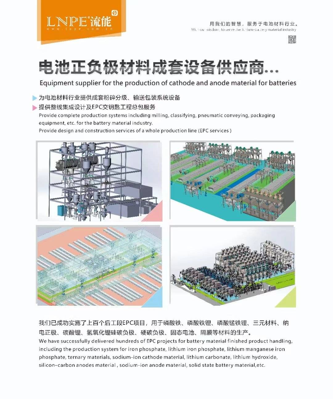 綿陽流能粉體設備有限公司作為電池正負極材料成套設備供應商攜電池材料粉碎分級、輸送包裝系統(tǒng)成套設備亮相。