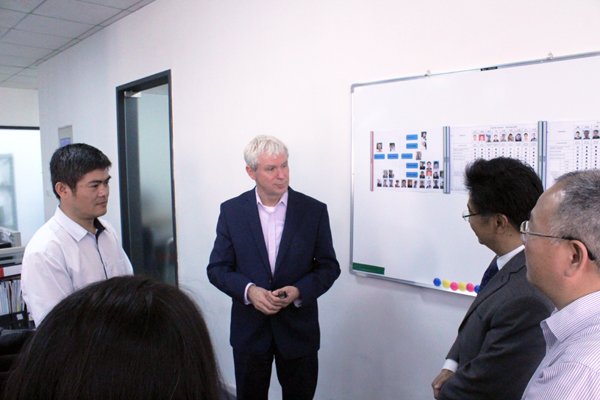 Jan Van Rijn先生首先來到研發部、采購部、財務部及業務部門各崗位,在歐美克管理團隊的指引下,與每位在座的同事親切交談,詢問各位同事的部門職能、工作狀況等。