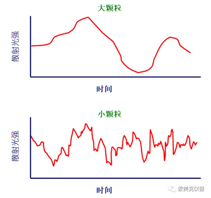 顆粒越小,顆粒在介質中的布朗運動速率越快,儀器監測的小區域中顆粒散射光光強的漲落變化也越快。然而,當顆粒大至微米極后,顆粒的布朗運動速率顯著降低,同時重力導致的顆粒沉降和容器中介質的紊流導致的顆粒對流運動等均變得無法忽視,限制了該粒徑測試方法的上限。基于以上原因,動態光散射的納米粒度儀適宜測試零點幾個納米至幾個微米的顆粒。