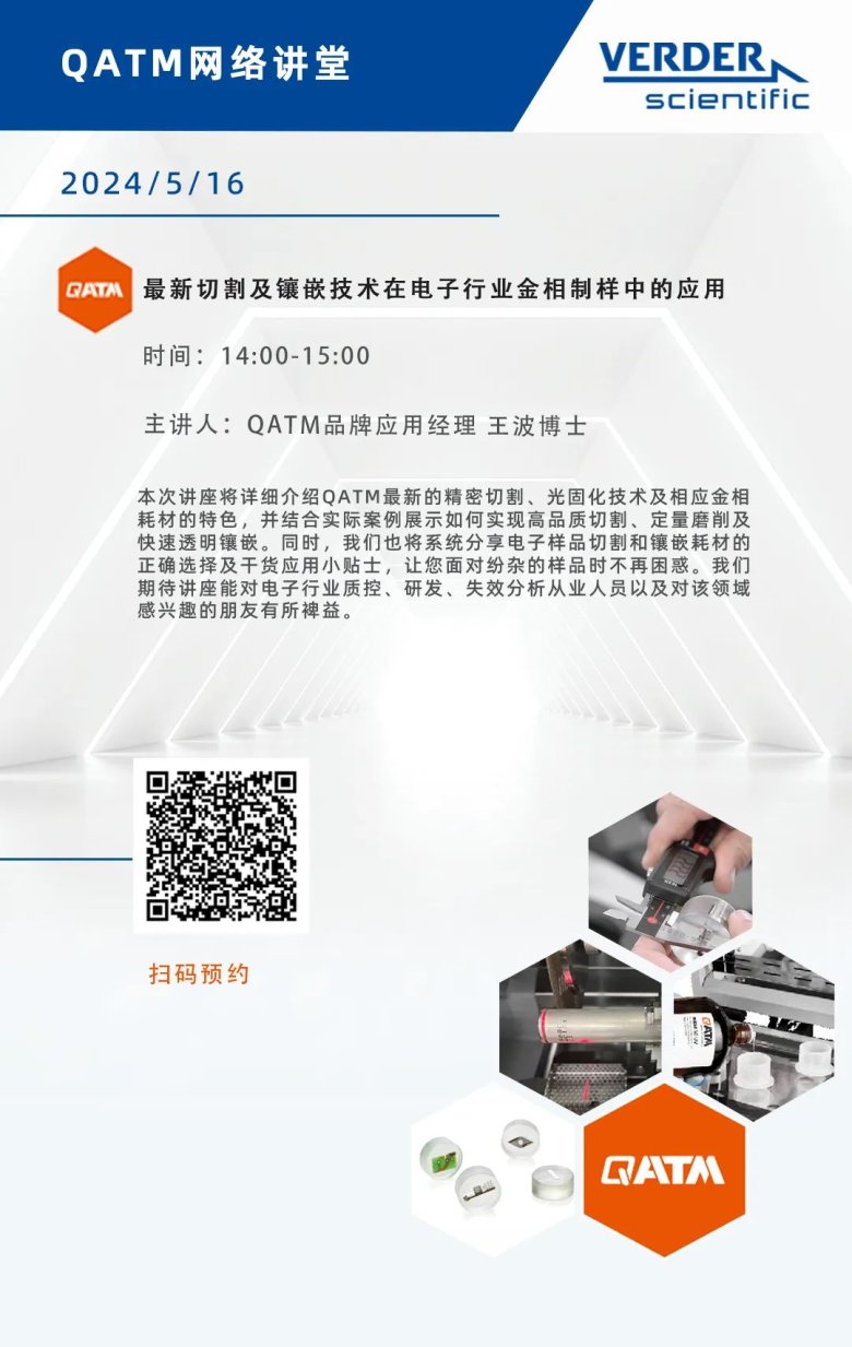 ?5月16日 2024 WEBINAR /在電子行業日常的研發、質量控制和失效分析工作中,金相分析(即切片分析)都是必不可少的分析方法和手段。由于電子類樣品的特殊性和復雜性,其切片制備方案與傳統金相制樣有一定的區別——舉例來說,精密切割、冷鑲嵌及高品質金相耗材常常是電子樣品切片制備的標配。如何在保證優