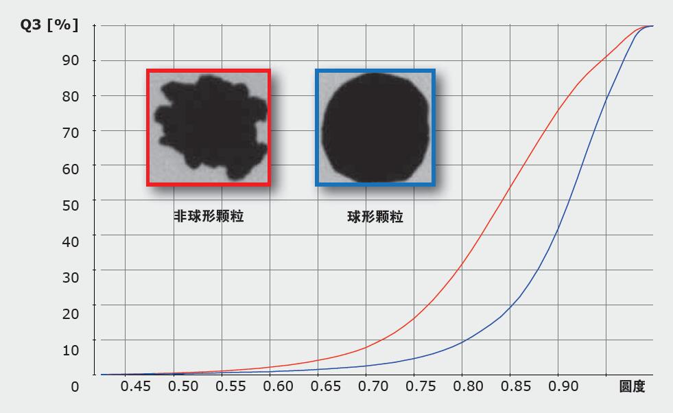 CAMSIZER X2適用于許多藥物的粒度與粒形分析。典型的應用是在干法模塊中使用X-Fall或者是X-Jet模塊快速且充分地測量所有小球和球體。多虧了靈活的分散方式選擇,極細的晶體或者微?;钚猿煞郑砑觿ㄈ缋w維素和檸檬酸)都可以被很好的表征。審計追蹤軟件“AuditTrailManager”是CAMSIZER X2軟件的可選部分,其研發遵循21CFR-11要求。這個例子展示的結果是兩個具有相似粒徑,不同粒形的顆粒 。
