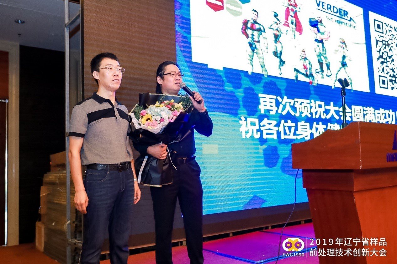 1915年創(chuàng)立的德國RETSCH(萊馳)作為樣品前處理的領(lǐng)導(dǎo)者,非常榮幸地為此次大會(huì)冠名、贊助。德國萊馳中國區(qū)總經(jīng)理董亮先生出席此次會(huì)議,值此大會(huì)開幕之際發(fā)布開幕致辭,董總用短短的五分鐘時(shí)間,給與會(huì)聽眾留下了深刻印象。沒有長(zhǎng)篇大論的公司介紹,沒有重復(fù)廣為人知的原理和應(yīng)用,董總指出實(shí)驗(yàn)過程中絕大多數(shù)的分析誤差都是來自于樣品前處理,樣品前處理過程的嚴(yán)格把控,極大地提高了后續(xù)理化分析的準(zhǔn)確率。對(duì)于固體樣品,前處理的關(guān)鍵目標(biāo):一是達(dá)到樣品均質(zhì)化,這樣才能取得有代表性、重現(xiàn)性的樣品;二是達(dá)到后續(xù)分析處理的細(xì)度;另外還需要避免前處理過程中污染物帶入的問題?;谝陨蠘悠非疤幚硪螅聡鳵ETSCH能提供整套合適的樣品前處理設(shè)備。最后德國Retsch(萊馳)遼寧省授權(quán)代理商沈陽沐倫科技有限公司的宋桂林總經(jīng)理上臺(tái)獻(xiàn)花。