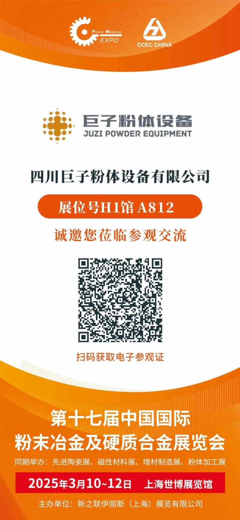 ?2024第十六屆中國國際粉末冶金及硬質(zhì)合金展于2024年3月6-8日在上海世博展覽館舉辦!900+知名展商,45000+平米面積.匯聚業(yè)界精英,分享世界領先的前沿技術,創(chuàng)新應用和解決方案。四川巨子粉體設備有限公司將攜金屬粉末氣流分級設備亮相此次盛會。四川巨子粉體設備有限公司展位號:H1館B1041